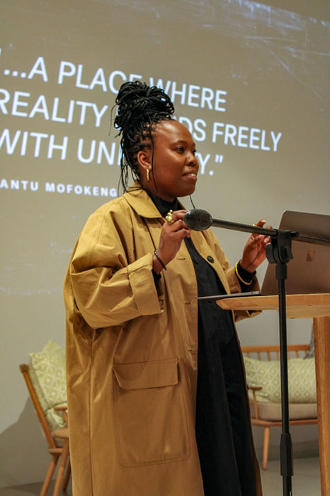 Manyaku Mashilo was born in 1991 in Limpopo, South Africa, and is currently based in Cape Town. Her multidisciplinary practice encompasses mixed media painting, drawing, and collage, addressing themes of spiritual identity, memory, ancestry, community and belonging. Drawing on inspiration from photographic archives, she depicts scenes where imaginary characters migrate through fantastical worlds between unknown places and rituals of shared belief. Mashilo’s characters are often represented through portraits set in abstract cosmological landscapes. Her scenes are visual stories that offer a plurality of imagined futures; piecing together mappings of time, place, space and making sense of a rich tradition of African spirituality and identities.